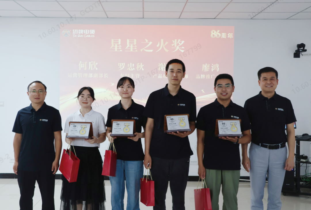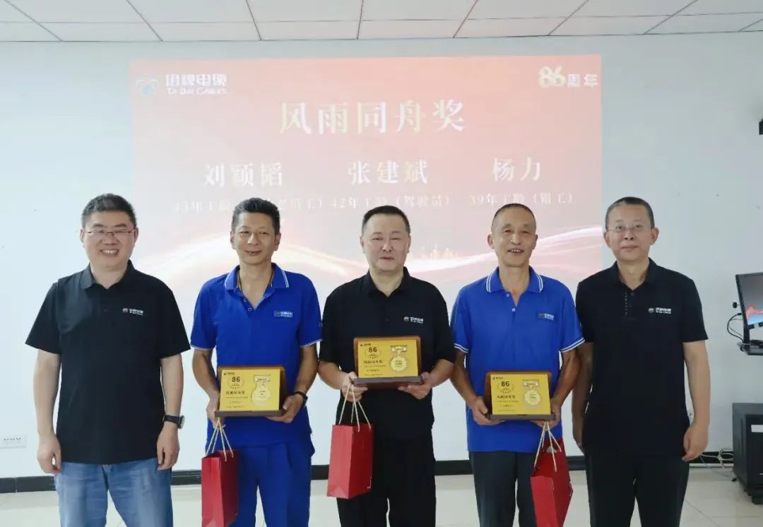 傳承與創(chuàng)新,是塔牌精神的靈魂。 老一代的堅守,新一代的銳意,共同鑄就了塔牌電纜86年的基業(yè)長青。在充滿儀式感的頒獎環(huán)節(jié),公司為工齡最長的3位老員工頒發(fā)了“風雨同舟獎”,感謝他們數(shù)十年如一日的堅守,與塔牌電纜共歷風雨。 同時也為4位優(yōu)秀青年骨干頒發(fā)了“星星之火”獎,感謝他們以創(chuàng)新思維突破技術邊界,用青春激情點燃塔牌電纜的未來之光!